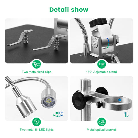 Moreover, the high object distance of the AD208 digital microscope is able to provide large workspace. Also, in line with ergonomic design, the AD208's adjustable metal stand is capable of enlarging the working space. Thus, users can work with the larger workspace.